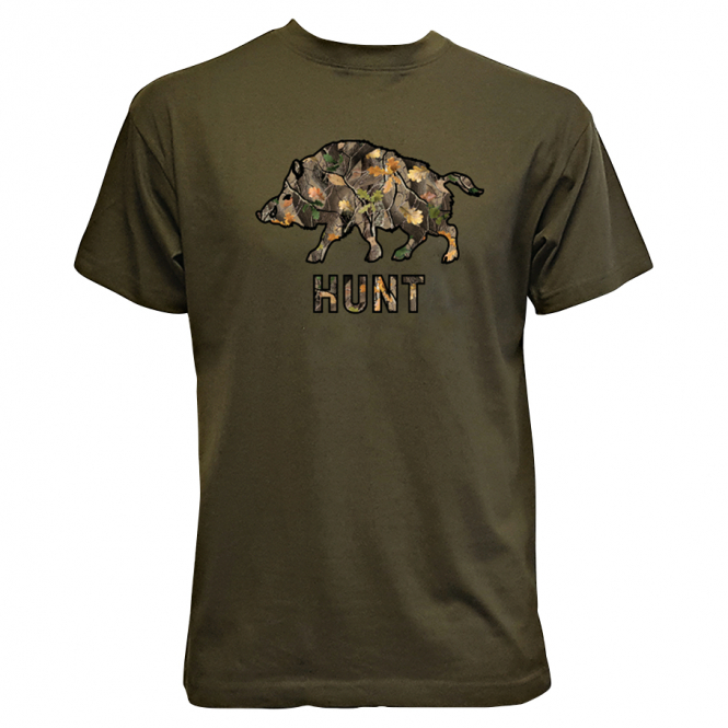 Comfortable t-shirt made of cotton with a big motif on the front. Colour: olive. Material: 100 % cotton.