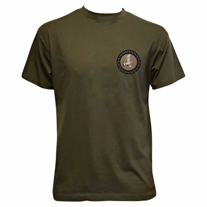 Comfortable t-shirt made of cotton with motif on the chest. Colour: olive. Material: 100 % cotton.