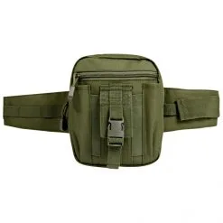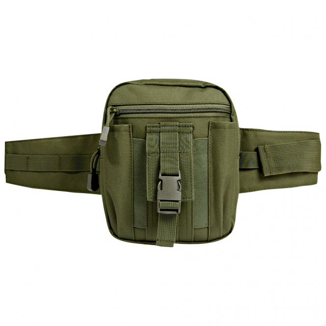 Belt: 4 cm wide, max. 120 cm long. Total weight: 290 g, Molle system loops, organizer pouch fixed, bottle holder removable by Velcro and loop, ideal for work, leisure and sports. Pouch: high quality quick release closure, one large main compartment with zipper, one front compartment with zipper, one inside zipper compartment, high quality zippers with zip pullers, flexible smartphone front pocket, two pen or tool front pockets. Dimensions: 18 x 14 x 6 cm. Bottle holder: Molle system loops, can also be worn on simple belts, snow skirt with drawstring and stopper. Diameter for bottles: approx. 9 cm (0.5 – 1 liter). Dimensions: 21 x 9 x 9 cm, weight: 75 g.Colour: olive. Outer fabric: 100% polyester, water repellent coated, lining: 100% polyester, elastic straps: 80% polyester, 20% elastodiene.