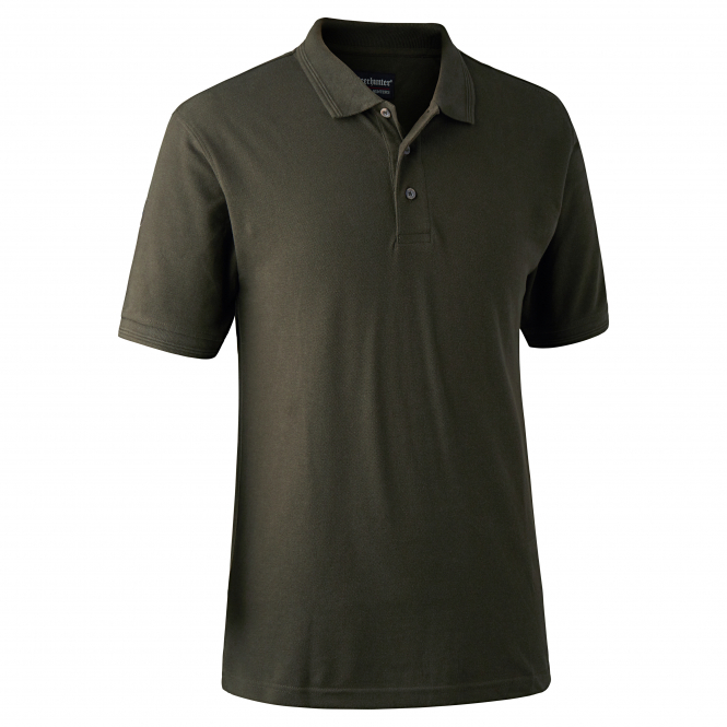 Durable polo shirt for hunting and everyday use. Colour: green. Material: 70% cotton, 30% polyester.