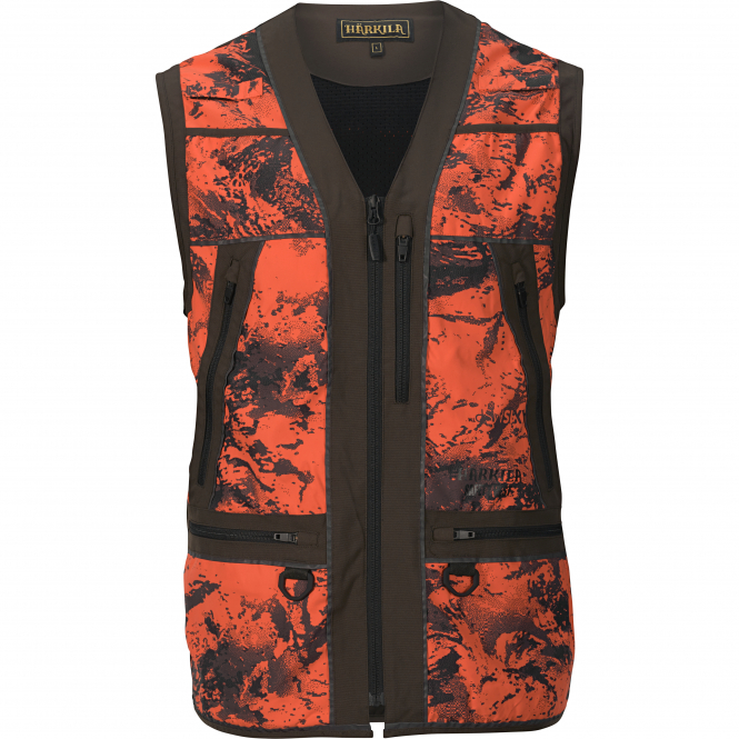 The Wildboar Pro safety vest is made of a durable material with AXIS MSP® Blaze camouflage. The breathable mesh material provides the necessary air circulation under the vest during high activity. The vest is equipped with multiple vertical and transverse reflective stripes that increase visibility. It has two handwarmer pockets, two front pockets with sewn-in cartridge holder and a roomy rabbit pocket on the back, all with zippers. Other features include radio/GPS pockets on both sides of the chest with a Velcro strap for antenna attachment, and two strong integrated D-rings on the front pockets for attaching dog leashes or other gear. Colour: orange/brown