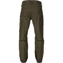 Functional companion made of breathable, moisture-wicking stretch material with raised waistband and robust leather reinforcements on the front. There are cartridge holders on the left side of the large zippered thigh pockets. With ventilation zippers for comfortable wearing climate. Colour: willow green/shadow brown. Material: 84% polyester, 16% polyurethane.