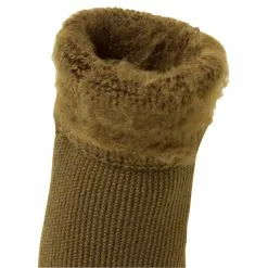 A thermal mens slipper sock for those cold winter days.The extra long pile cushioning and triple brushed technology gives the wearer a comfortable, snug and warm fitting sock. The extra thick and bulky acrylic yarn has superb thermal qualities. Colour: olive. Material. 91% acrylic, 5% nylon, 3% polyester, 1% elastane.