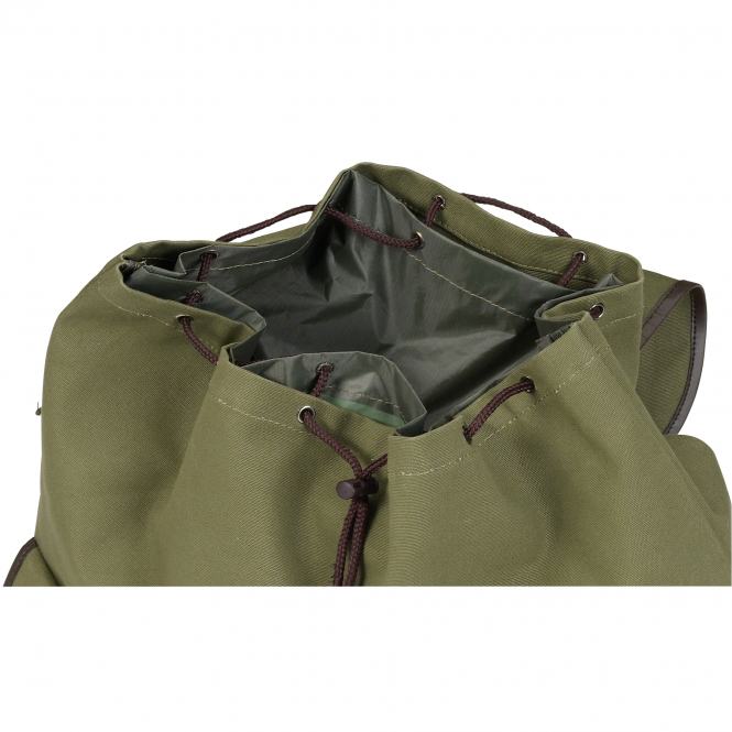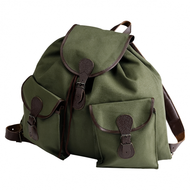 Extra large backpack made of canvas with removable sweat insert. This XL version model has been equipped with quick-release buckles on the leather carrying straps to make it easy to put the rucksack on and take it off. An additional carrying loop as well as leather applications on the 2 spacious outer pockets round off the overall appearance of the backpack. Approx. dimensions: 50 x 55 x 10 cm. Volume approx: 27.5 l. Colour: green.
