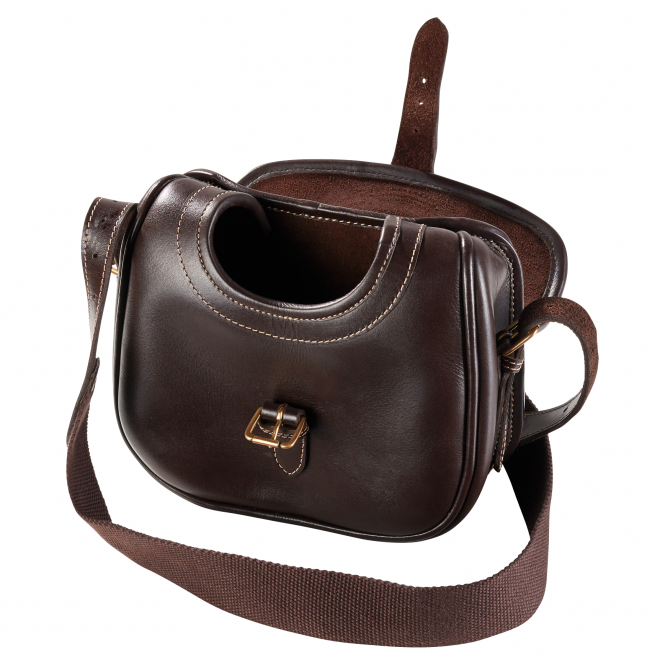 Classic shotgun cartridge bag for small game hunting. This robust bag made of first-class leather is excellently crafted and guarantees a long life. Dimensions: 27 x 26 x 11 cm.