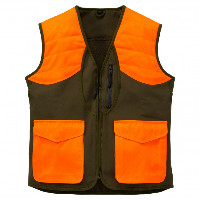 Compact vest for dog handlers. Spacious pockets offer enough space for leash, GPS device and other accessories. Orange shoulder and pocket areas are clearly visible. Equipped with water-repellent zippers. Colour: olive/orange. Material: 100% polyester.