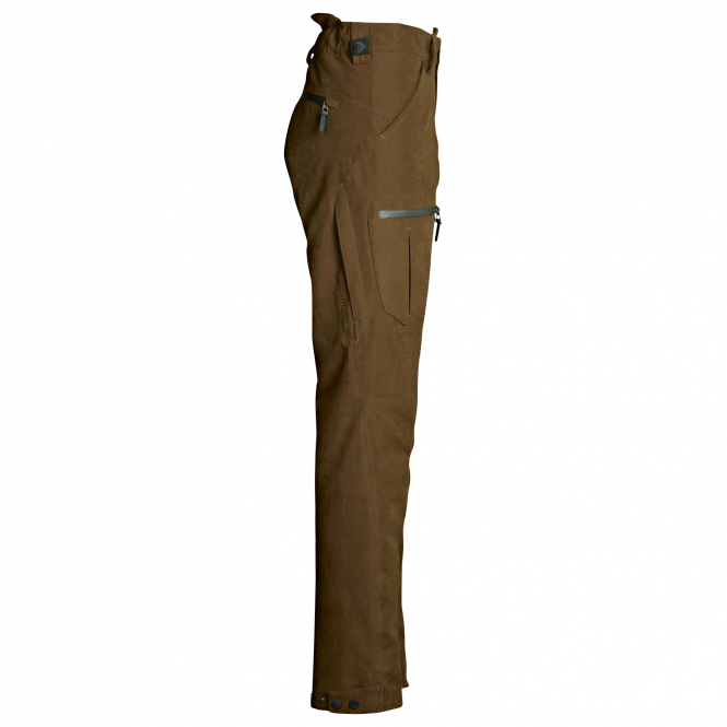 The ADDVENTEX™ ECO membrane makes these hunting trousers windproof and waterproof. The fabric is also low-noise and extremely durable. With 2 side slit pockets, 2 thigh pockets with zips, a back pocket with zip, slightly raised waistband at the back, adjustable foot width, waterproof ventilation zips on both sides and sturdy D-ring. Water column: 10,000 mm, breathability: 12,000 g/m²/24h. Colour: brown. Outer material: 45 % cotton, 35 % polyester, 20 % nylon, lining and insulation: 100 % polyester.
