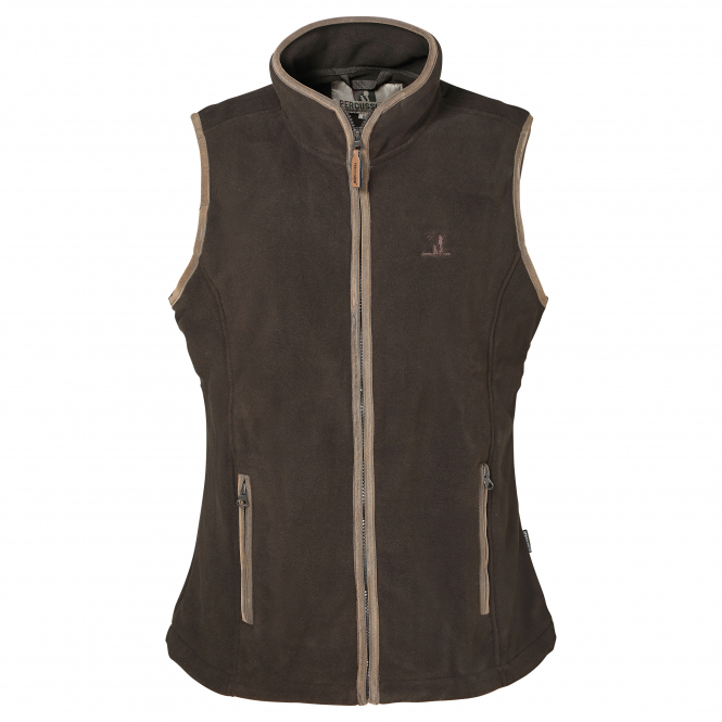 A versatile fleece vest with high-quality imitation leather details. With stand-up collar, 2 zipped pockets, 2 inside pockets and side vents. Colour: khaki. Material: 100% polyester.