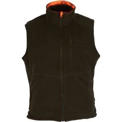 Practical reversible hunting vest with two different colored sides for increased visibility when needed. The soft and quiet recycled anti-pilling fleece and straight cut provide ideal comfort. With radio pocket with opening for antenna and rabbit pocket. Colour: strata blaze/green. Material: 100% polyester