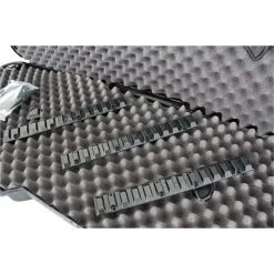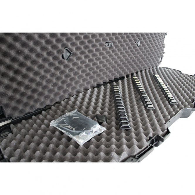 Extra-large storage space with four safety straps to keep weapons firmly in place. High density interlocking foam. Colour: black.
