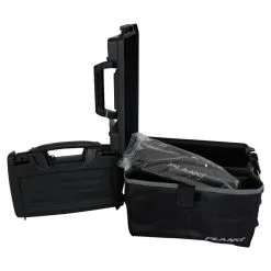Includes a shooting stand pocket and two medium-sized detachable pockets. The large front pocket secures the pistol pocket or holds medium to large frame pistols. Two magazine pockets, a large side pocket and a mesh pocket on the back are used to store accessories. Capacity for one firearm, pistol type. Colour: black with grey accents. Dimensions: 38.7 x 24.8 x 23.5 cm.
