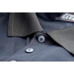 Functional and noble polo shirt for the perfect wearing comfort and look! The soft and high-quality material is very breathable and dries quickly, which is an advantage for sweaty activities in nature. The classic fit also makes it comfortable and pleasant to wear. With high-closing polo collar made of high-quality black knitted fabric and short sleeves with equally high-quality sleeve cuffs made of black knitted fabric. The fused button placket with three buttons rounds off the elegant appearance. With ID inner collar, hem separation and small, contrasting logo print on the chest. Colour: bluegrey. Material: 100% polyester.