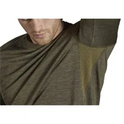 The Active long-sleeved shirt was developed as a base layer under hunting or leisure clothing. The quick-drying model is equipped with an anti-odour treatment that counteracts unpleasant odours. This means that it is often sufficient to simply air the product instead of washing it – a great advantage if you don’t have the opportunity to wash it on longer tours or only want to carry a small amount of luggage. The waffle structure on the inside ensures better air circulation during high activity. Colour: pine green. Material: 96% polyester, 4% spandex.