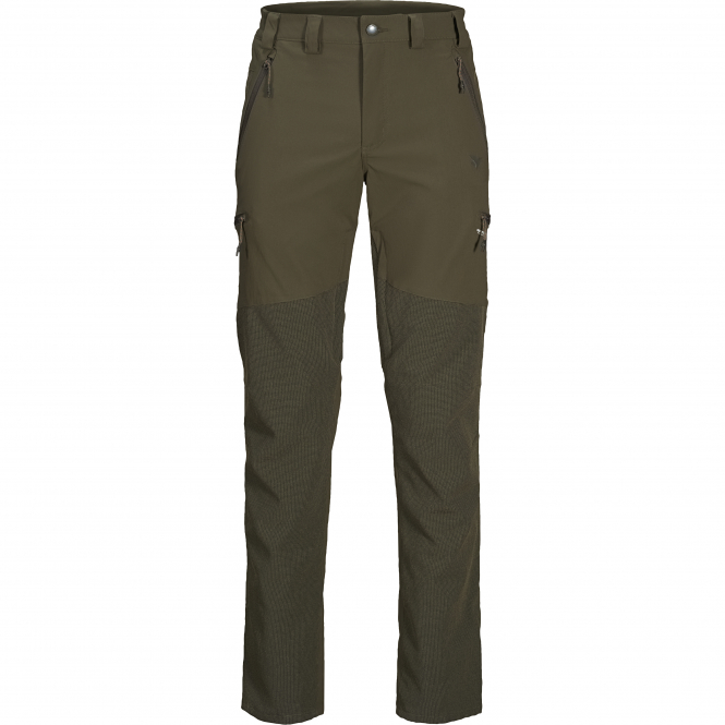 When you’re battling your way through dense undergrowth on a driven hunt or doing heavy field work, you need robust trousers that can withstand the rigours – ideally these outdoor membrane trousers. Thanks to reinforcements in particularly stressed areas such as the lower legs, buttocks and knees, this model is made for heavy work that demands a lot from the clothing. The trousers are hard-wearing and have a windproof and waterproof SEETEX® membrane. The trousers have four pockets: Two on the thigh and two on the hip. When closed, the zip is hidden behind a small piece of fabric to prevent snagging. Thanks to the seams in the knee area, you can squat effortlessly without the fabric stretching. In addition, the trousers are equipped with belt loops. Thanks to the elastic waistband, they are extremely comfortable. In addition, they are adjustable at the ankles to ensure an optimal fit. The Outdoor Membrane trousers are a fantastic, comfortable model for versatile, tough outdoor use and the perfect choice when maximum durability is required. Colour: raven.