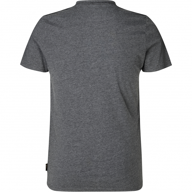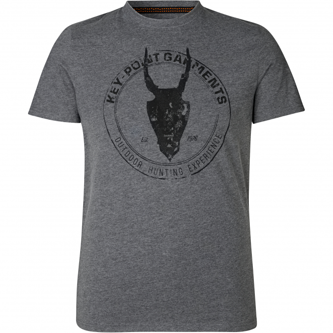T-shirt in straight cut and high round neckline. With high-quality print on the front. Colour: grey melange. Material: 60% cotton, 40% polyester.