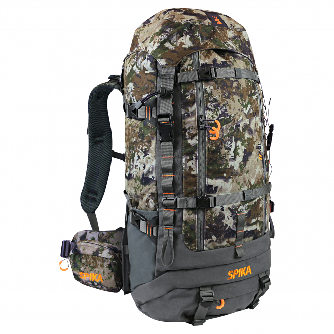 Durable 500D DWR reinforced nylon shell with reinforced bottom. The front pocket can store essential gear, while the main compartment can be accessed via a full-length front zip or a traditional top opening. With side pockets, reinforced areas in high-wear areas, padded straps and hip belt, load-stabilising frame, many straps, compartments, attachment options for a wide range of accessories, e.g. water bottle, hiking pole, ice axe. Incl. rain cover. Volume: 80 litres. Colour: Biarri Camo. Material: Upper material: water-repellent impregnated nylon, lining: textile.
